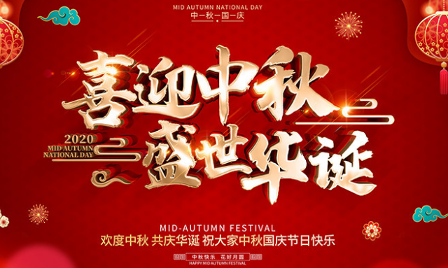 2020年中秋國(guó)慶假期就要到了,今年的中秋和國(guó)慶一起放假,一共8天。而放假回來10月10日將繼續(xù)上班,蘇州速芃達(dá)機(jī)電設(shè)備有限公司祝福大家國(guó)慶、中秋節(jié)日快樂。 國(guó)慶佳節(jié)即將到來,根據(jù)國(guó)務(wù)院關(guān)于法定節(jié)假日的規(guī)定和我公司工作實(shí)際情況,現(xiàn)將年國(guó)慶節(jié)放假如下: 2020年十一國(guó)慶節(jié)放假時(shí)間:2020年10月1日至10月8日放假,與中秋節(jié)連休。共放假調(diào)休共8天.